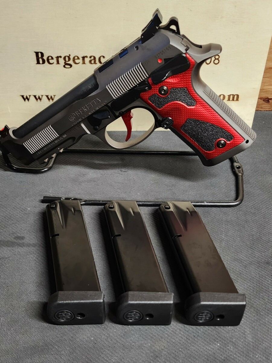 Chargeur d’une capacité de 18 coups (une configuration supplémentaire en bleu avec puits de chargeur allongé et talon de chargeur pour une capacité de 20 coups)