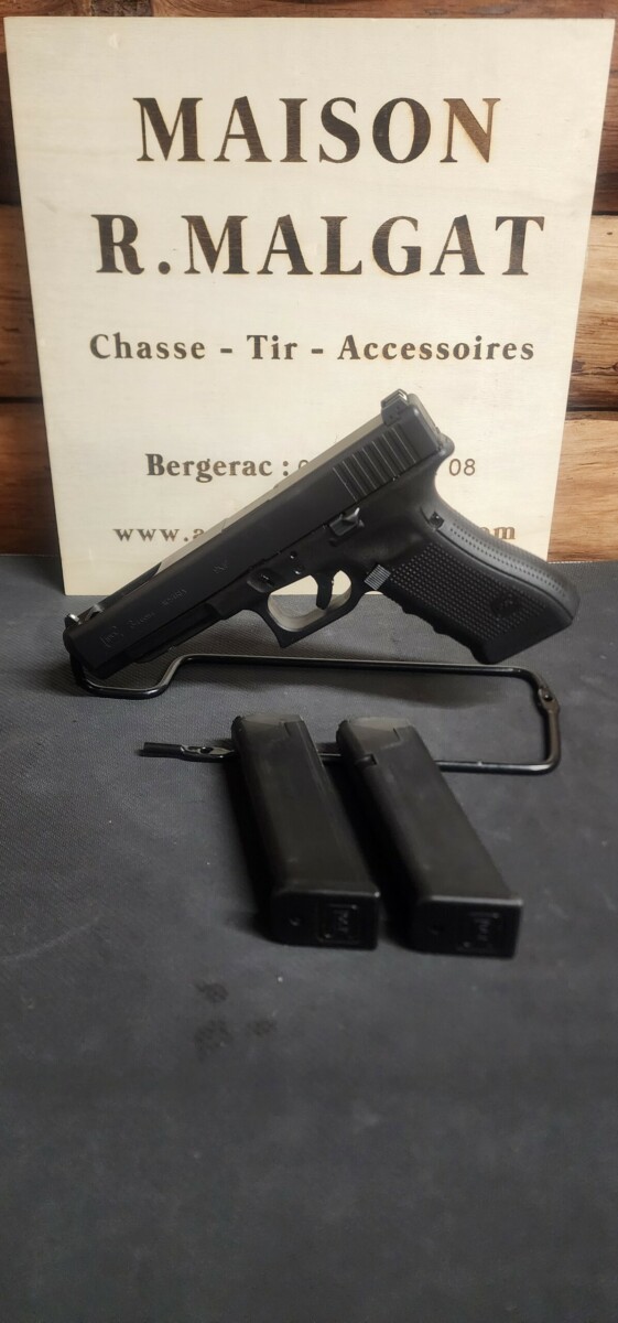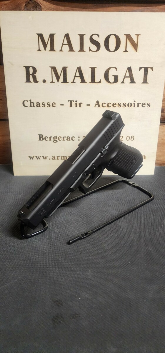 Idéal pour le tir sportif, le GLOCK 34 calibre 9mm est l’arme idéale pour le tir sur cible ou l’IPSC. Livré avec 2 chargeurs 17 coups Prise en main spécifique, canon long, arrêtoir de culasse rallongé et organes de visé réglable.